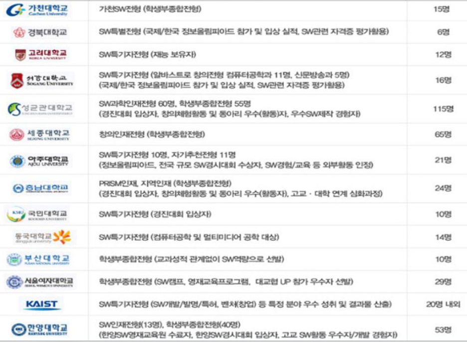 오늘은 코딩특기자전형으로 SW중심대학의